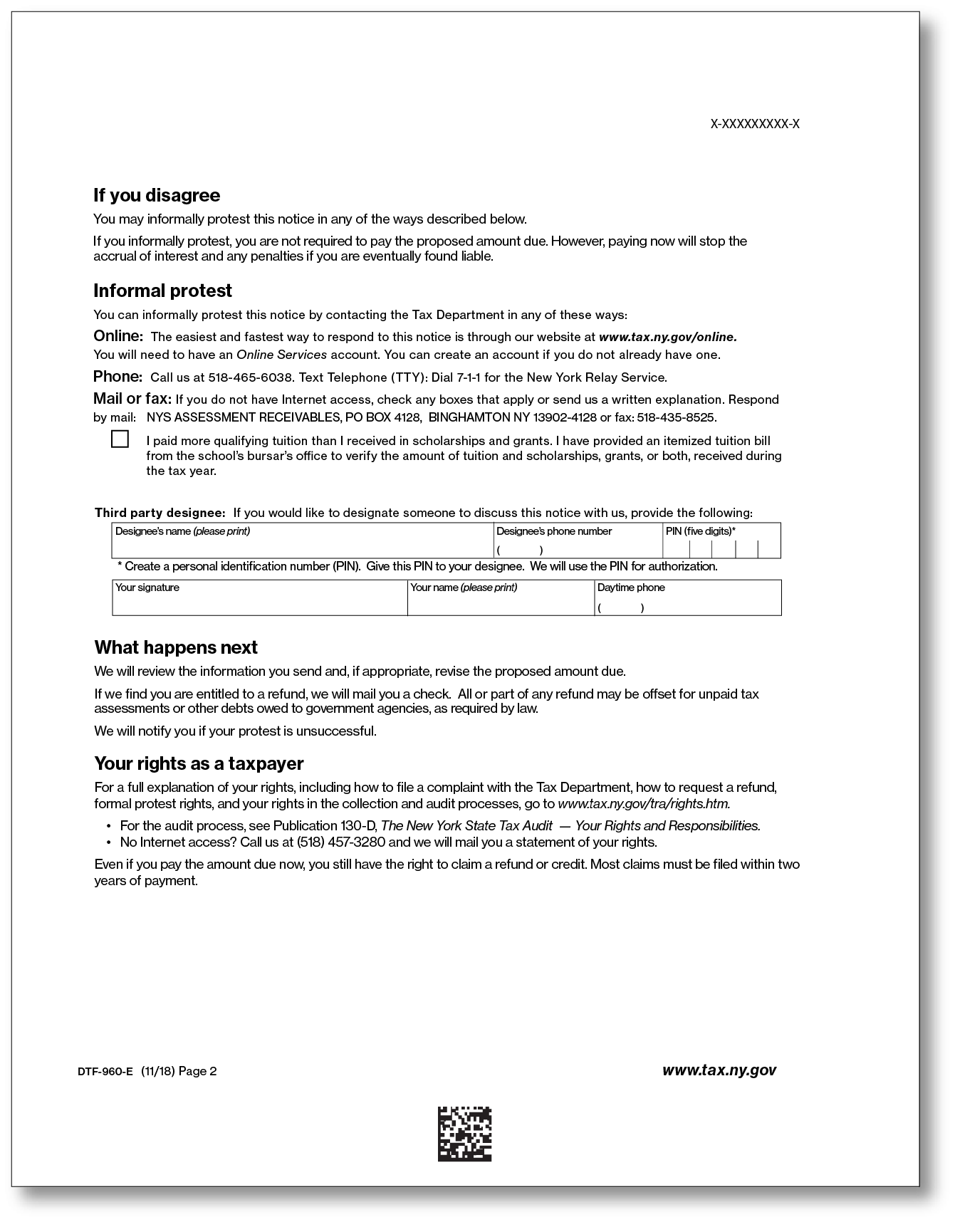 Pay personal income tax owed with your return. If you have your bill you can call New York at 518-457-5434. If you do not satisfy your full tax balance or comply with the terms of your IPA we may.